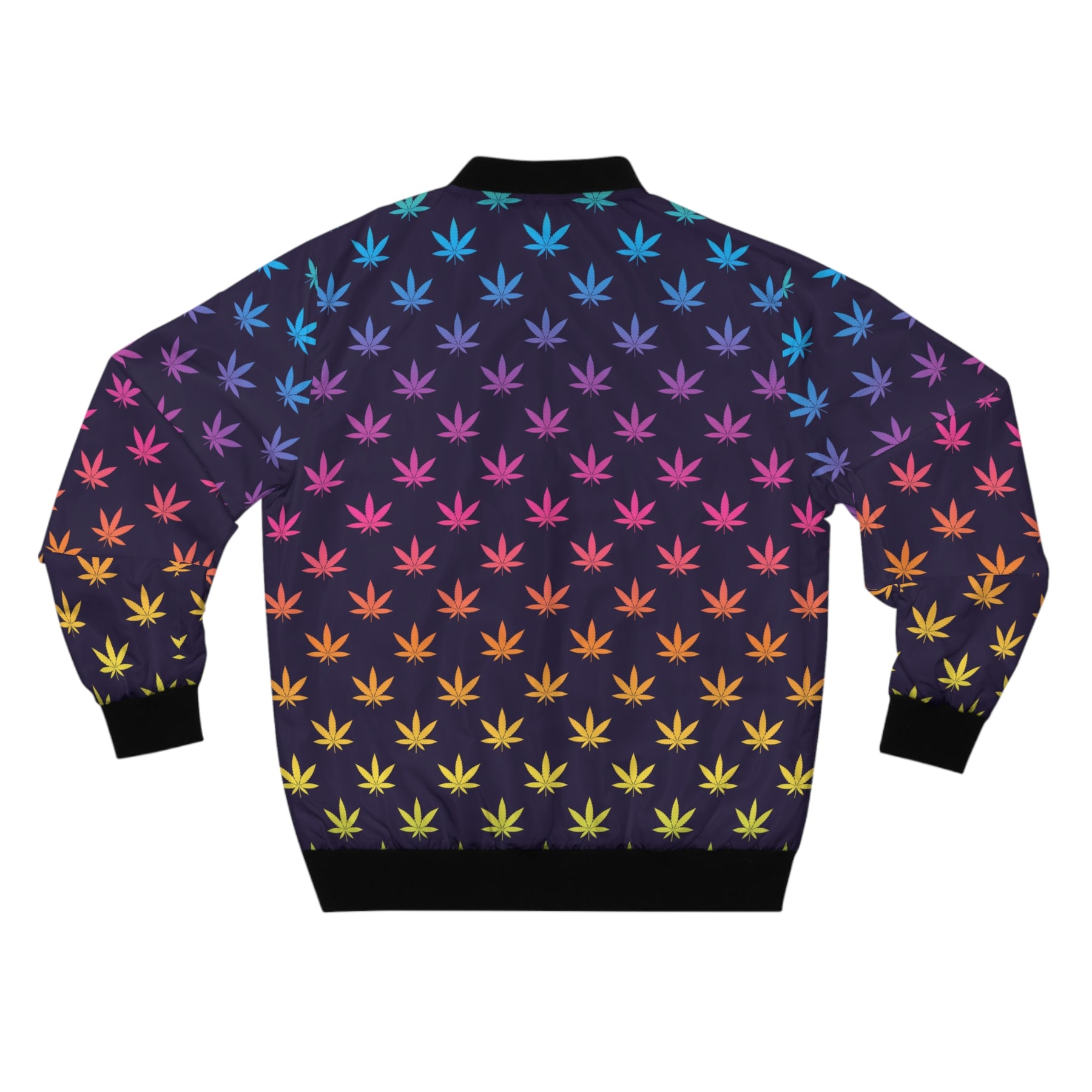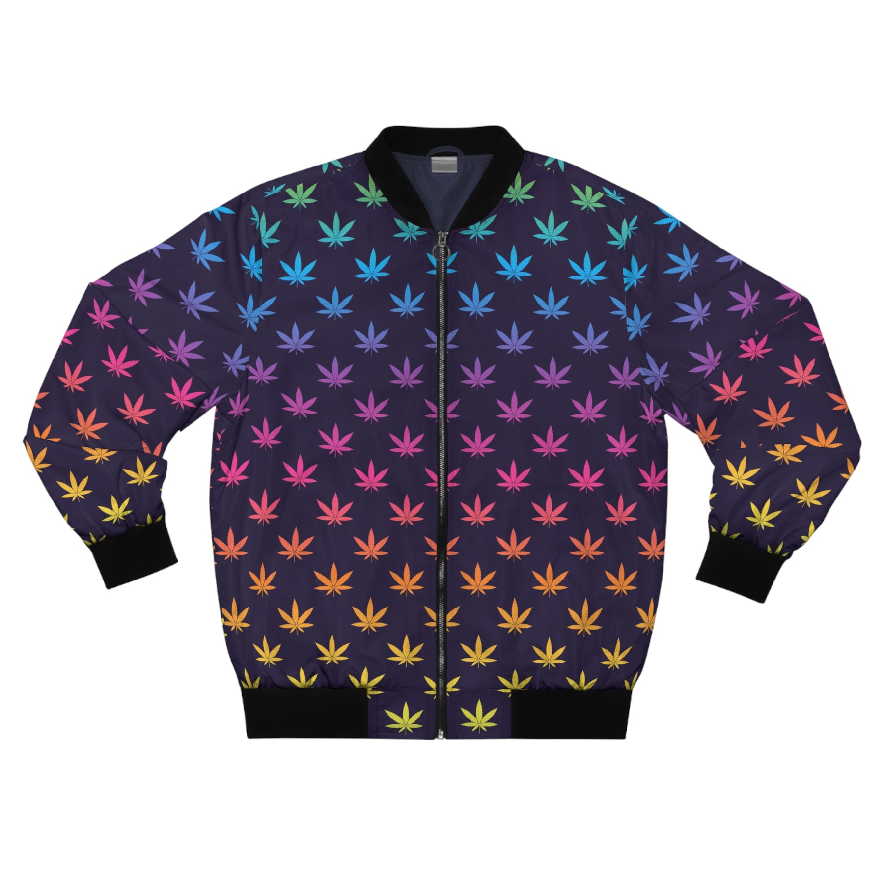 This bomber jacket carries a quiet, botanical edge. The multi-colored all-over Mary Jane leaves motif give it a low-key nature vibe without shouting. The structured polyester shell holds shape against wind and light rain, while the rib knit collar and cuffs keep the silhouette classic and grounded. Wear it on cool city mornings or at an outdoor music set — it moves with you, pockets hold the essentials, and the metal zipper closes out the chill. For someone who likes their style rooted in the outdoors but tailored for urban life, this jacket reads like a stroll through an evergreen avenue at dusk.