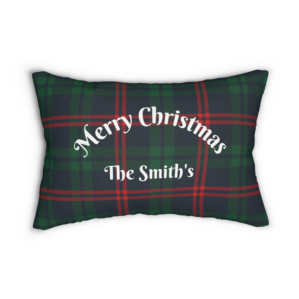 Personalized Merry Christmas Lumbar Pillow Tartan Plaid Custom
