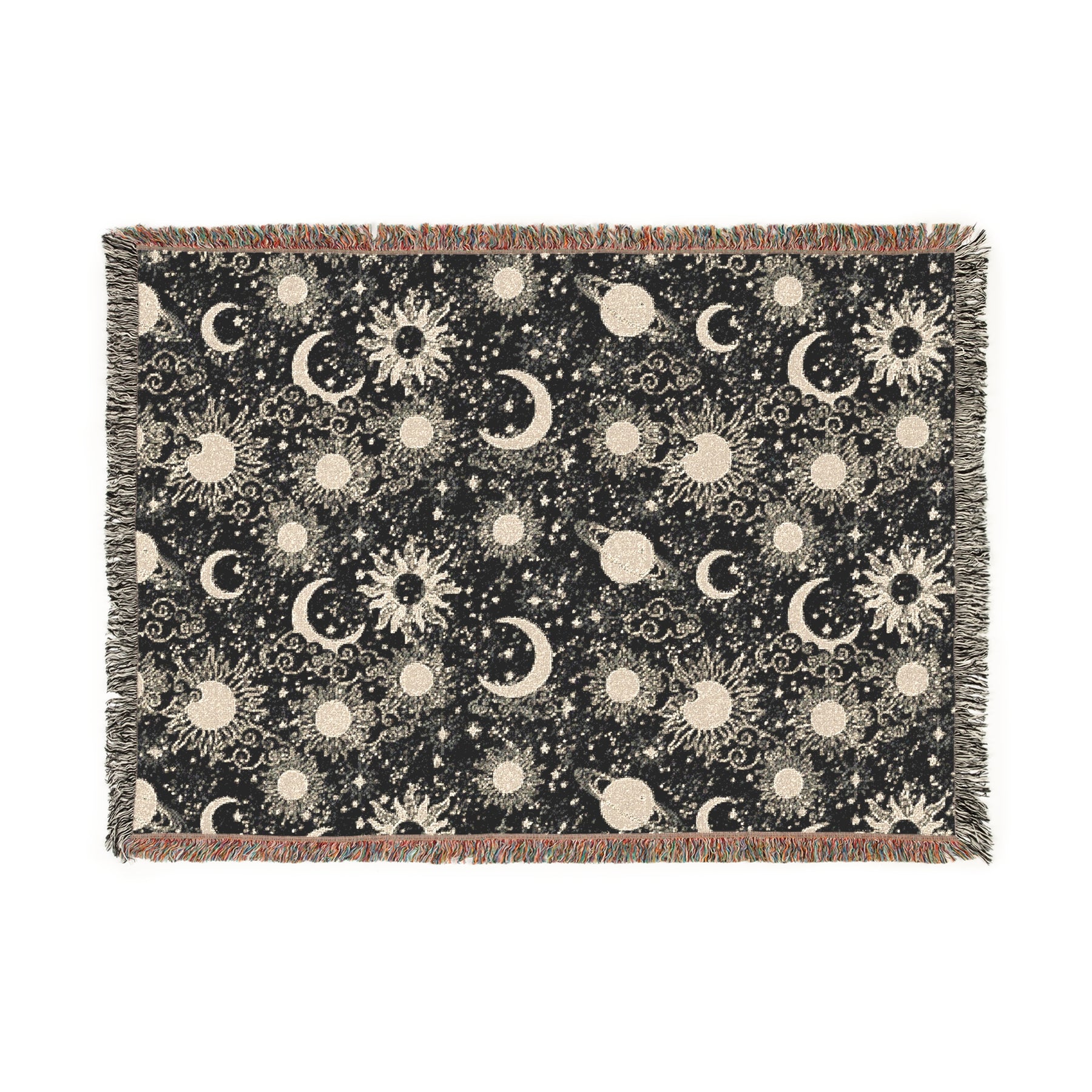 Celestial Woven Blanket - Cozy, Bohemian Throw for Stargazers, Home Decor, Gift for Lovers of Nature, Astrology, and Comfort