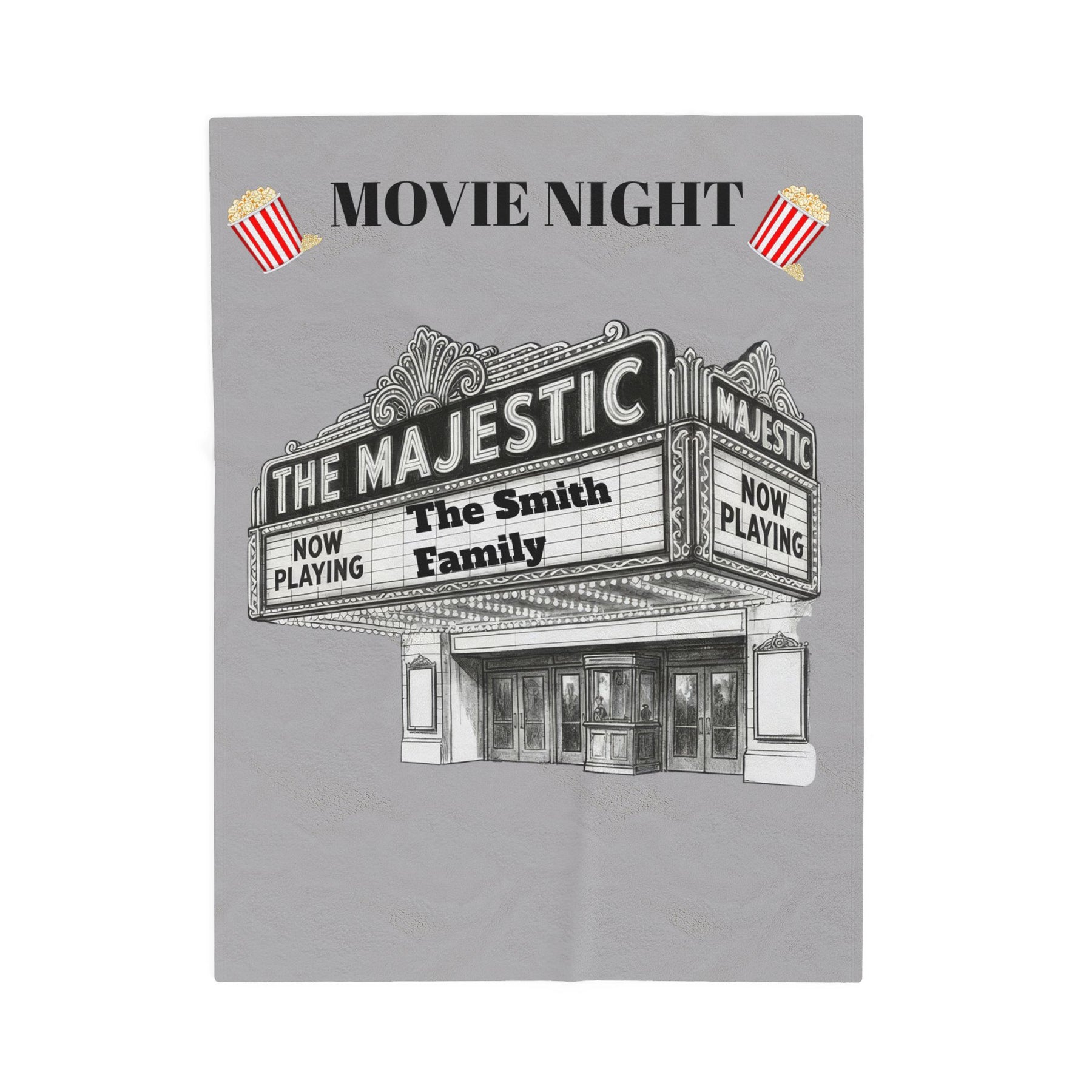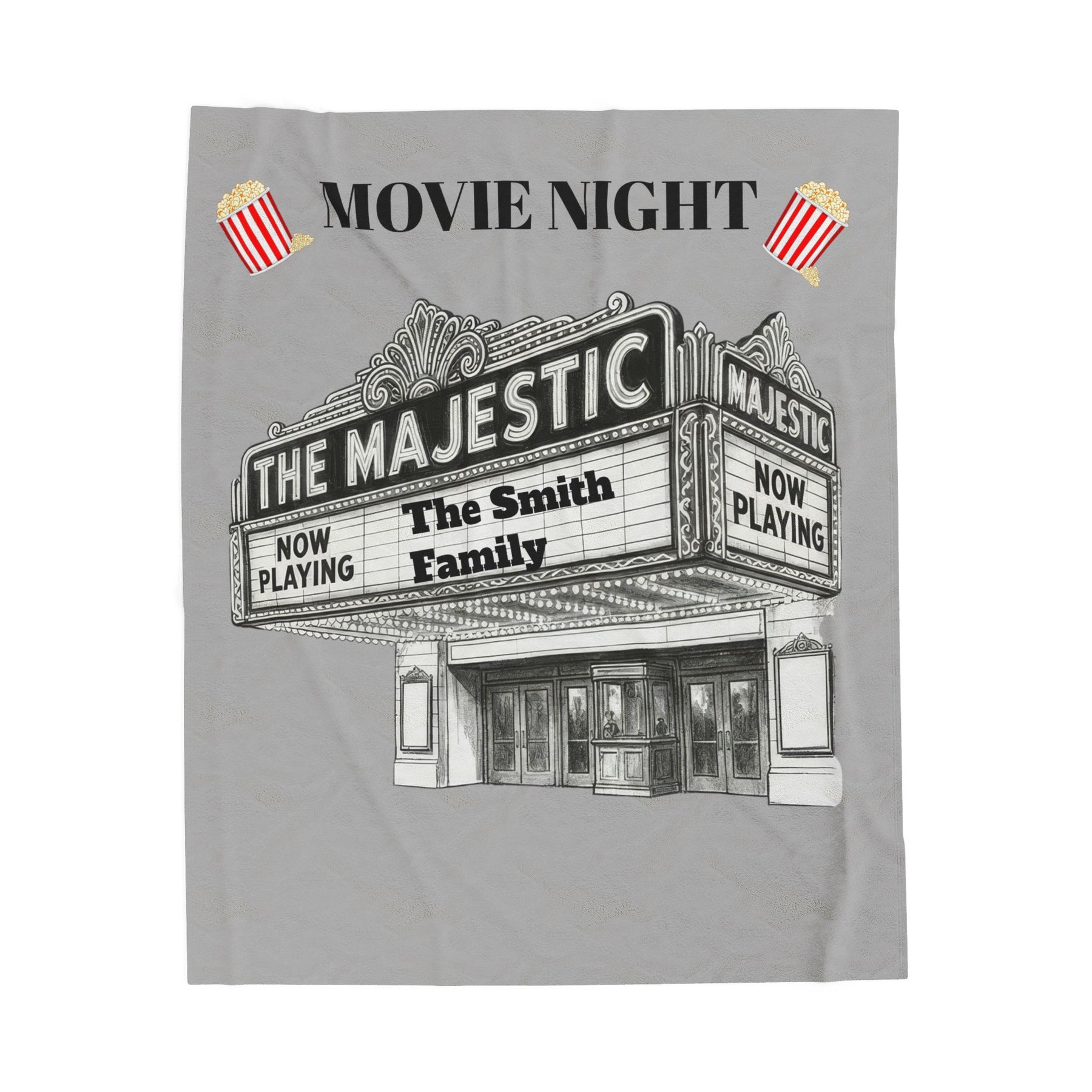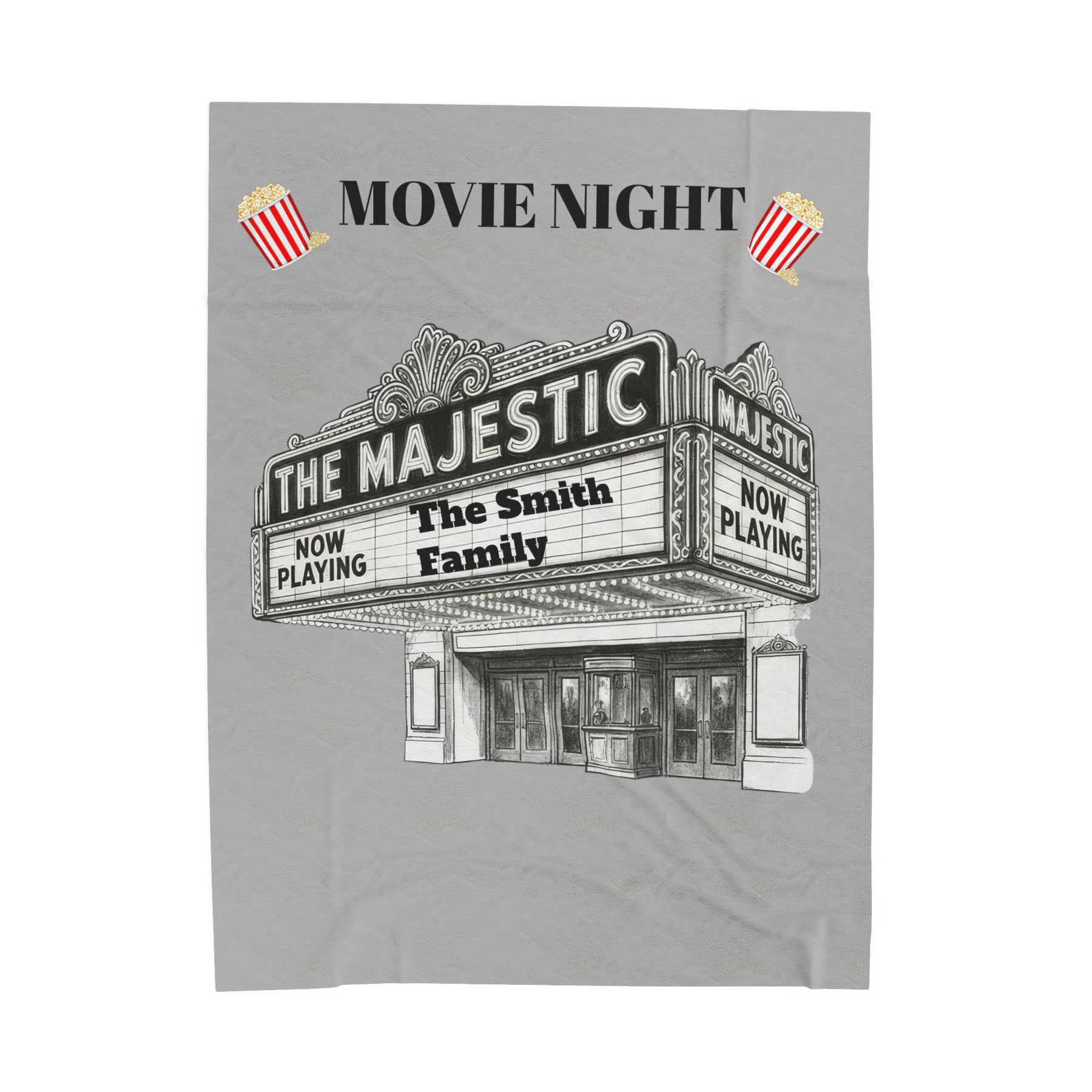 Dim the lights and sink into a warm, cinematic hush with this velveteen plush blanket. Embroidered in spirit by a personalized “The Majestic” theater marquee design, the blanket brings the cozy glow of an old-fashioned movie house to your living room. It drapes like a soft curtain over laps and shoulders, muffling the chatter and sharpening the focus on the film — buttery-soft fabric, vivid single-side print, and neat double-needle stitching that holds up through many screenings. Made for adults who love at-home movie nights, film marathons, and slow Sunday afternoons, it adds a subtle vintage-theater vibe whether you’re curled up on the couch, building a blanket fort, or gifting a fellow cinephile a quiet piece of nostalgia.
