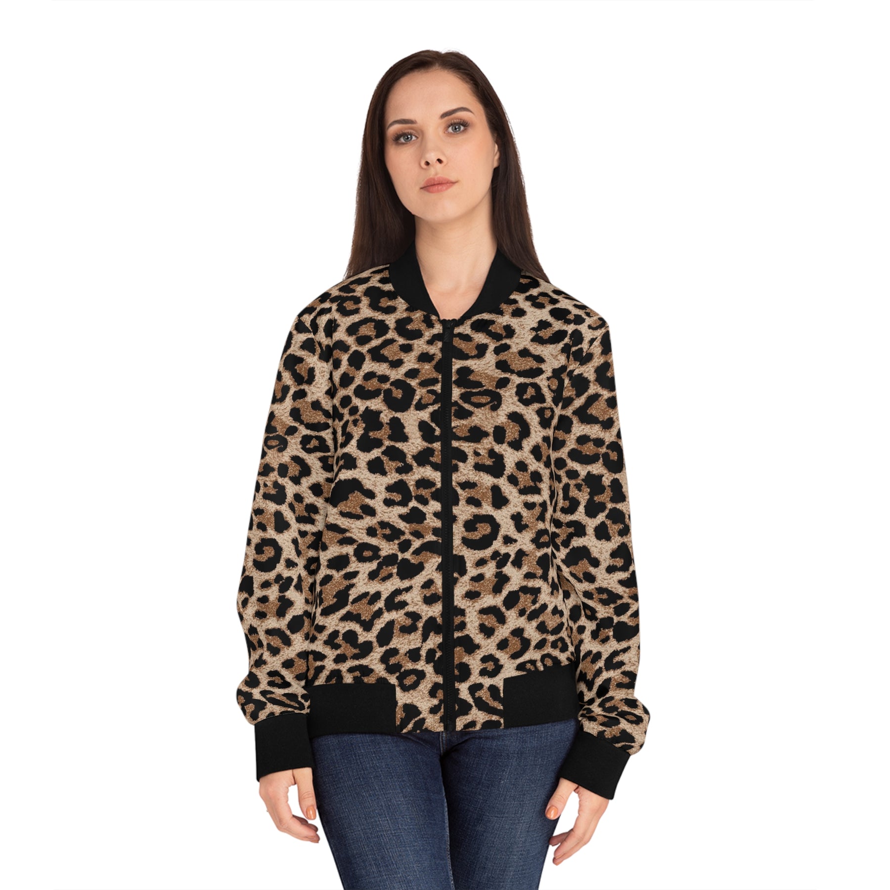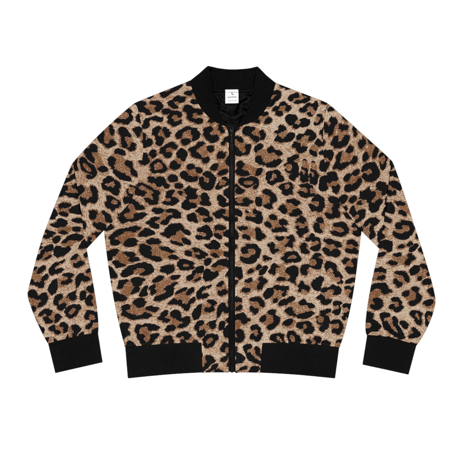 A bold leopard-print bomber jacket that brings confident energy to everyday outfits. Lightweight yet durable polyester gives the jacket an easy drape and fast-drying performance, while the ribbed stand collar and cuffs hold the silhouette in place for a flattering, regular fit. Slip hands into the angled front pockets between errands or while walking the city streets. The metal (copper-tone) zipper and matched seam thread keep the look clean and finished. This jacket layers smoothly over tees and sweaters, adding a fierce, fashion-forward statement for casual nights out, weekend market runs, or travel days when you want an edge without extra weight.